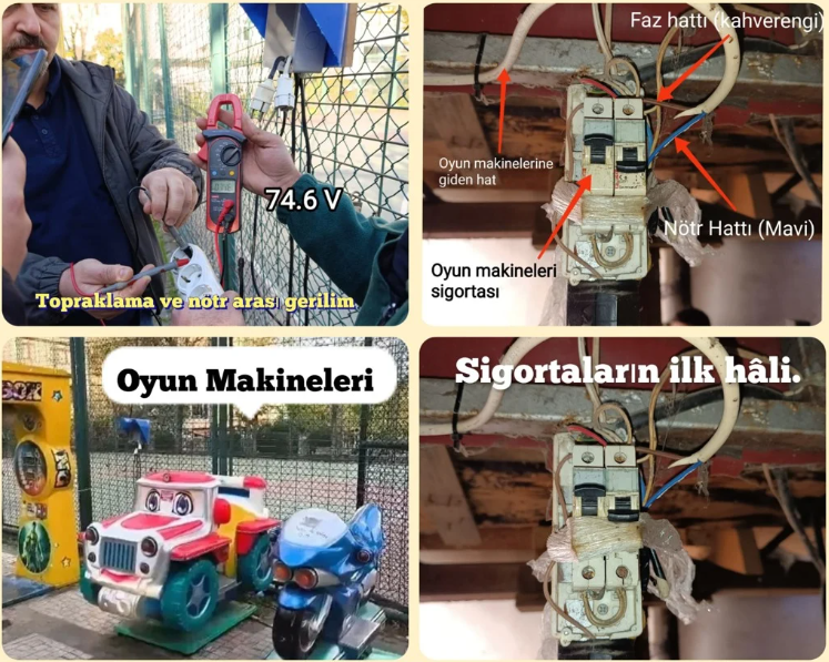 • Oyun makinelerine giden hattın pano ucundan toprak hattı kesilmiştir ve bağlı cihazların topraklama bağlantısı bulunmamaktadır.”