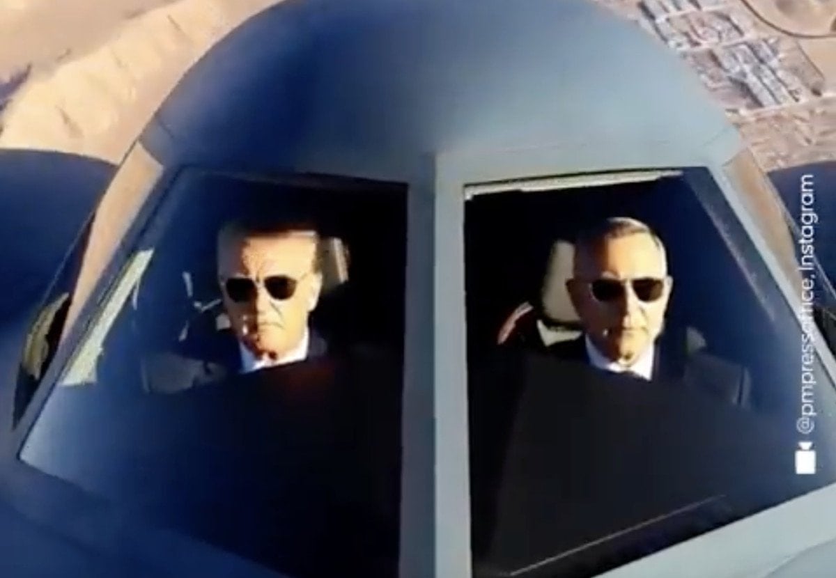 Uçağın kokpitinde ABD Başkanı Donald Trump, İsrail Başbakanı Binyamin Netanyahu’nun yardımcı pilotu olarak tasvir edildi.
